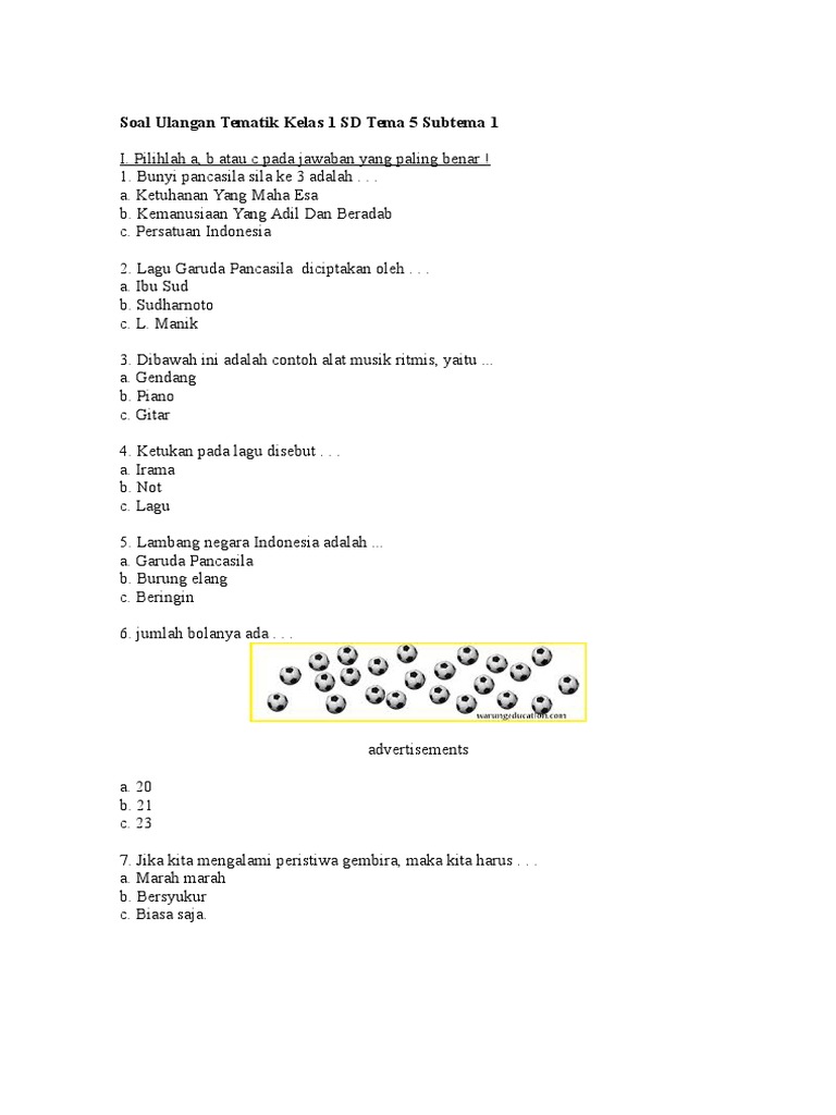 Soal Dan Jawaban Pjok Kelas 1 Tema 5 Semester 2 Kurikulum 2013 Youtube from i.ytimg.com Kunci jawaban soal ph kelas 5 tema 1; Baiklah sekarang anda sudah bisa mengunduh semua perlengkapan untuk kegiatan penilaian harian / ulangan harian seperti contoh soal, kunci jawaban dan kisi kisinya: Kisi kisi soal ph kelas 5 tema 1; Contoh soal pas kelas 5 sd/mi tema 1 tahun 2021/2022 online. Soal ulangan tema 1 kelas 5 sd kurikulum 2013 soal kurikulum 2013 pada kelas 1 sd revisi tahun 2017 ini kami bagikan yang mana untuk tiap tema dalam akhir tiap sub tema minimal ada satu penugasan sebagai langkah evaluasi bagi guru atas capaian daya serap siswa nya dalam kegiatan belajar mengajar pada kurikulum 2013 soal hots kurikulum 2013 sd. Soal tema 1 kelas 5 pilihan ganda. Soal tematik kelas 1 tema 5 kurikulum 2013 revisi terbaru. Soal tematik kelas 1 sd tema 5 pengalamanku subtema 2 pengalaman bersama teman dan kunci jawaban 19 desember 2018 25 april 2020 bimbingan belajar brilian 1 komentar.