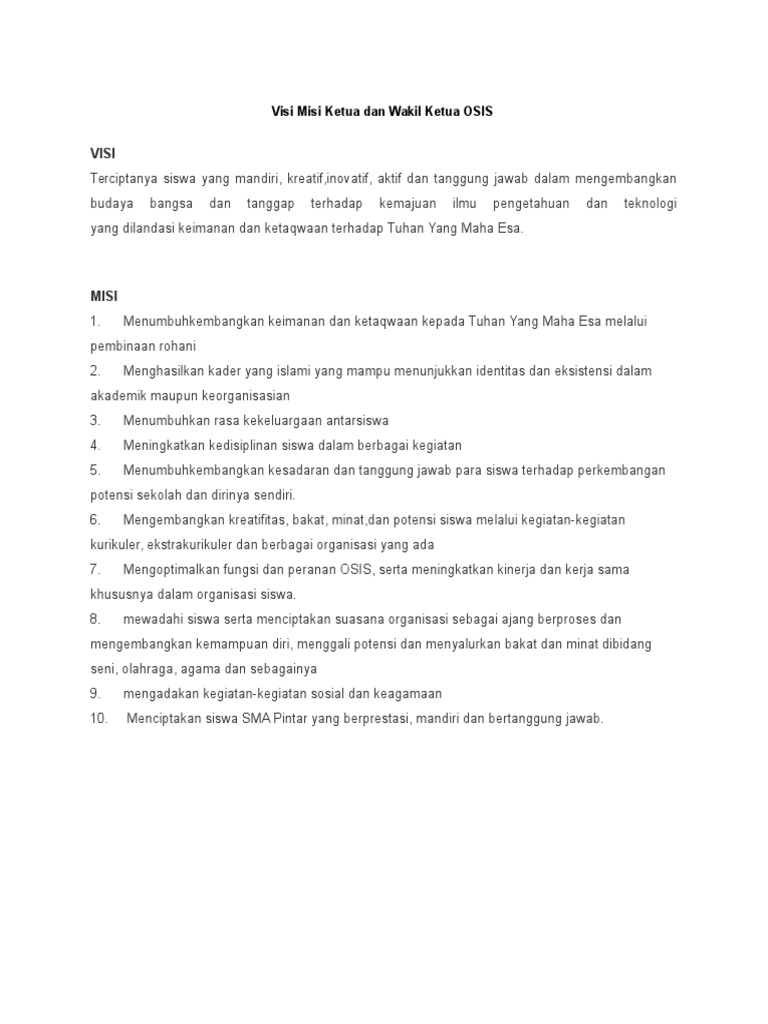 Posting Komentar untuk "Visi Dan Misi Osis Smp - Contoh Visi Misi Menjadi Osis Mosaicone : Check spelling or type a new query."